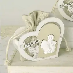 GESSETTO FORMA CUORE CON SIMBOLO CRESIMA IN LEGNO